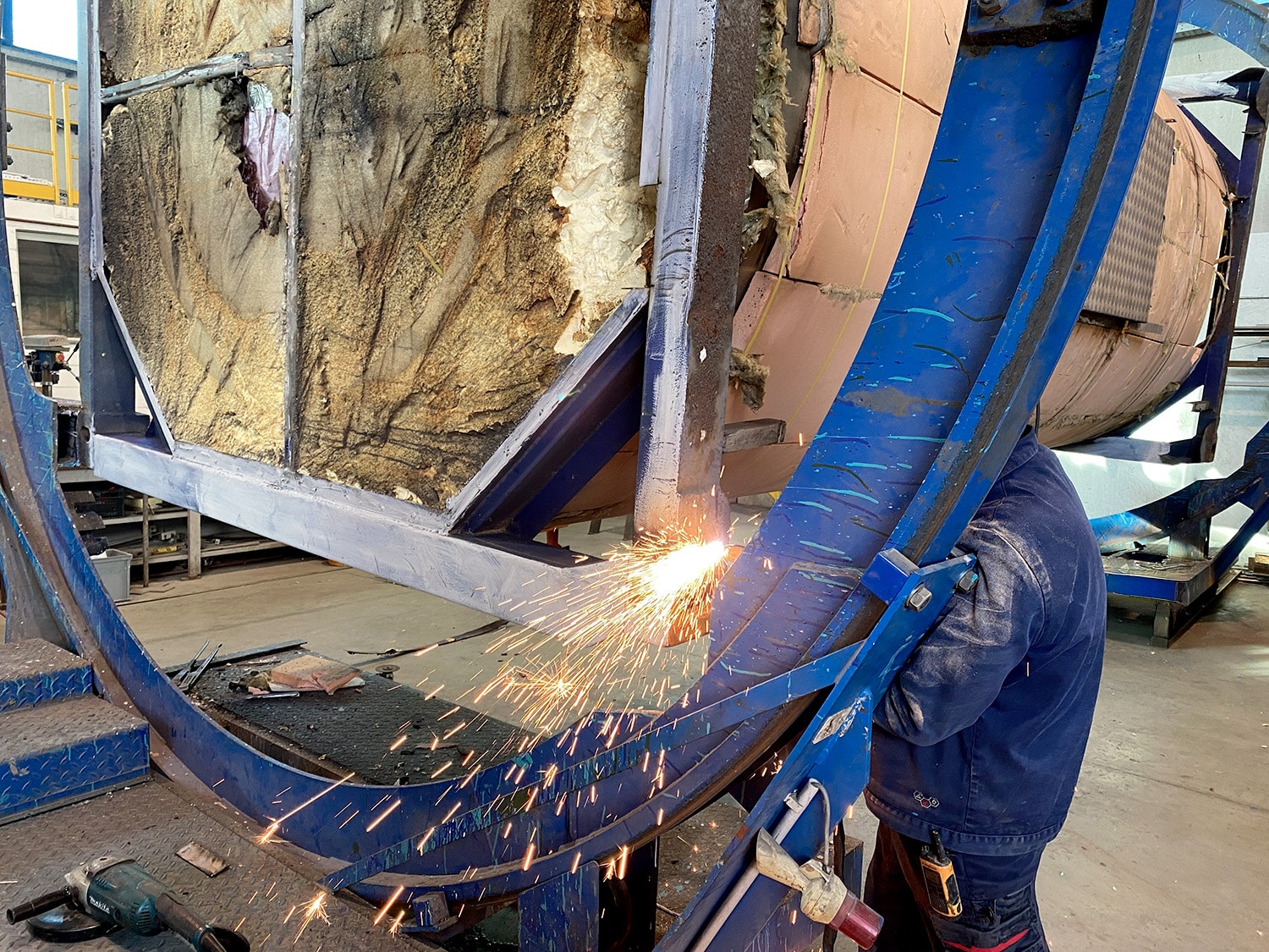 La nostra officina coperta è progettata per gestire più lavorazioni in parallelo, garantendo tempi rapidi e interventi completi. Grazie a due piste operative è possibile lavorare contemporaneamente fino a sei cisterne, mentre il ribaltatore consente di raggiungere in sicurezza ogni parte della struttura. Eseguiamo interventi mirati come la rimozione della ruggine, la verniciatura manuale e la riparazione dei rivestimenti esterni, riportando le cisterne alle condizioni ottimali per il riutilizzo o il collaudo.